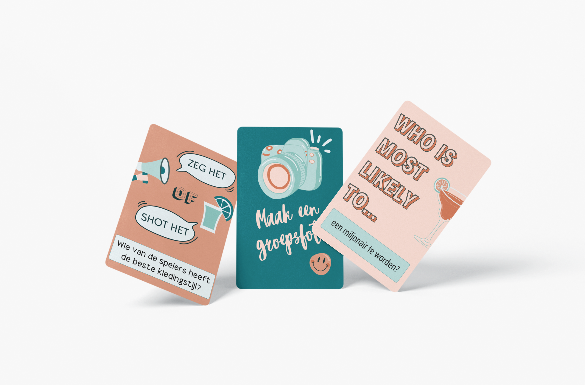 Bij CHEERS WITH US zijn we gek op gezelligheid. En laat onze spellen precies daarom draaien: gezelligheid, lachen en het starten van de leukste gesprekken met je vrienden.